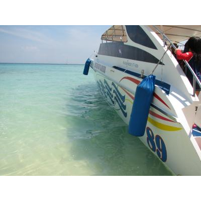 次に回ったカイ島もやはり凄い人出で、ビーチパラソルが海に向かって8列くらいありました。そして砂浜には珊瑚のカケラがいたる所にあるので水中用の靴を履いてくればよかったと後悔。(ビーチサンダルでは歩き難いのと、砂が入ってかえって痛いので)