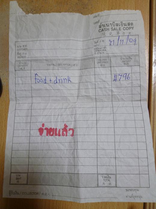 頭にきてお店に戻り、その500Bを出すと、レジにいた男性は苦笑いしながらまともな500Bを出してきました。こちらはまだ何も言ってないのに!!