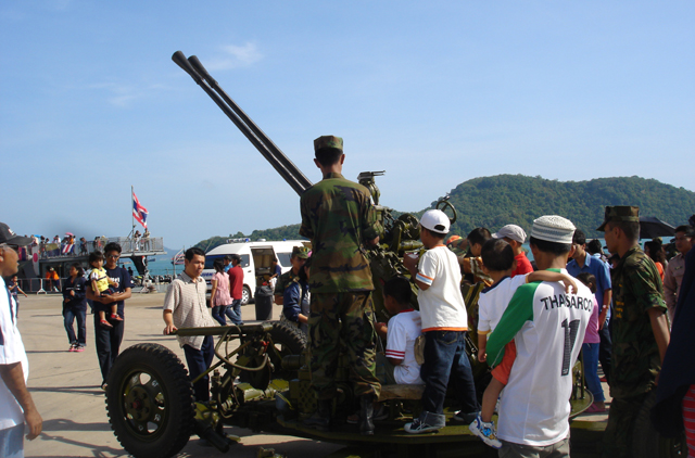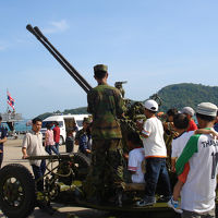 空軍に夜エアーショーなどが一番多いイベントで、動物園はこの日バカリは子供はフリー・・ともなると家族総出で動物園へ・・空軍の航空ショーへと親は大変な騒ぎ・・・・何処も渋滞その上車を駐車できなくて・・大変・・まして今年は土曜日が子供の日そして日曜日と月曜日は先生の日(これは非祭日です)で子供達だけは3連休見る限り12月から既に5度目の3連休・・今年は年明けから親は大変だあ・・・・ご苦労様といいたい・・子供の日だけどね・・・でもプーケッとではあの時の船があの時の援助船が公開され実際に乗り込むことが許可されているなどで子供達の喜びのカオが嬉しい感動を与えてくれていた。その横では空軍による大砲なども披露され其れを触ることが出来るなど・・大大サービスが拡げられていた。