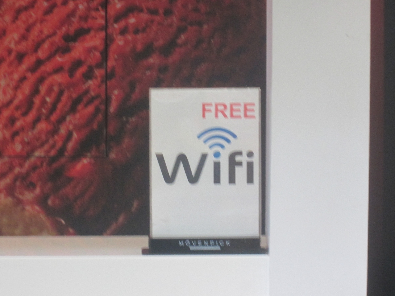 町中のレストランでも無料のWIFIを提供しているところがたくさんありますが、タイではパスワードの入力を求められることが多く、でも結構メニューの下やナプキン立てやカスターセットの横に掲示してあることもあります。(お手軽)