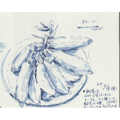 タイは果物が豊富で、小さめのバナナが一房8本位・何と5バーツ(メーホンソンバス停前の店)皮が薄くて実が多く・甘く・日本のバナナより美味しい。また、朝食の定番・焼きバナナも美味しい・・ケーキのようなおイモのようなティーにピッタリの美味しさです。焼く手間がかかっているのでこちらは5バーツで3本(カンチャナブリ)なり。