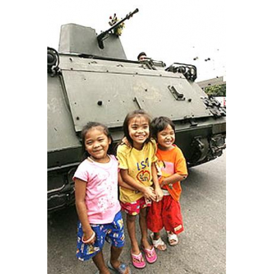 子供達の嬉しそうな顔は隠せない・何しろ20日全国の学校は休みとなり突然の休みは勿論喜ばしいものでありそして偶然見ることが出来た装甲車や戦車の物凄い様子・・彼らの顔には緊迫した表情がない・・それだけ何も起こらない証拠だろうと思う・・・