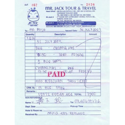 今回はパタヤの旅行代理店での事です。チェンマイ行きのタイ国内航空券をどうしようかと考えエアーアジアの航空券の予約をパタヤで入れましたがその事で色々ありました。エアーアジア本体は特に問題は無いのですがインターネットでの予約でも予約時期で値段に差が出ますね、二回に時期を分けてネット予約を入れたのですが1ヶ月くらい前が一番安かったです。また今回はタイの人も一緒だったので現地の代理店(パタヤサウスロードTUKCOMの1階チケットセンター)で1人分を別に自分と同じ内容で直前予約したらネット予約の2倍くらいしました。空港で予約したほうが安かったかなとか、パソコンを借りてタイで予約すればよかったかなとか悔しい思いをしました。(タイ航空より高いかな?)
