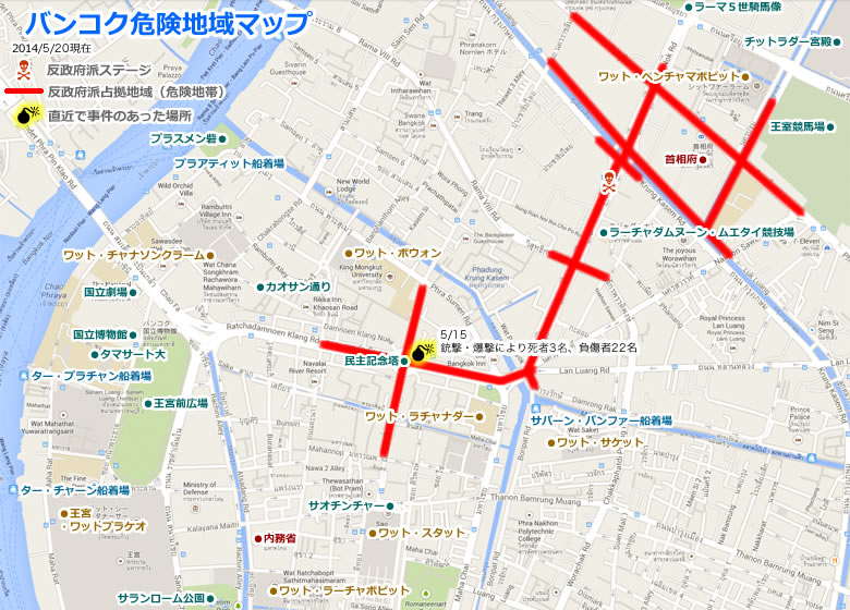 【バンコク危険地域マップ(反政府派拠点地図)】