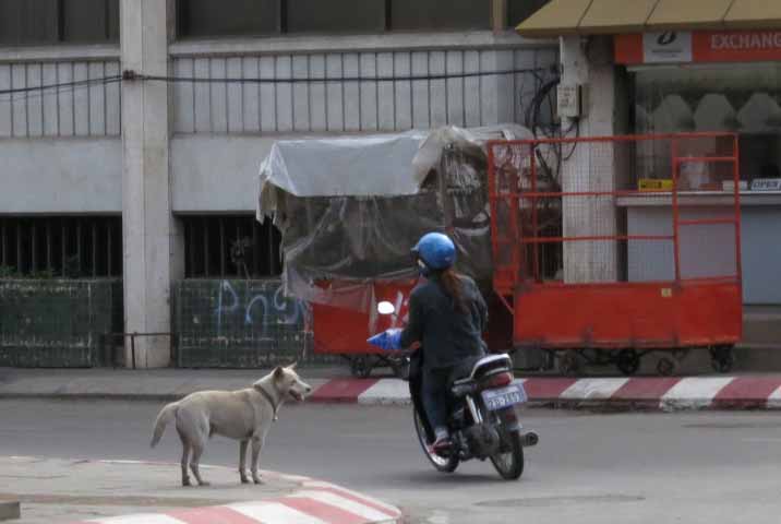 特別犬を怖がる必要はありません。犬はこちらが何かしない限りは、通常(狂犬病を発症している犬は攻撃的になるそうです)あちらから噛むという事は少ないです。しかし夜は注意しましょう。灯りが少なく暗い夜道に犬が寝転がっていたりして、踏みそうになります。踏まれたりすればあちらも噛むでしょう。よく足下をみて歩きましょう。