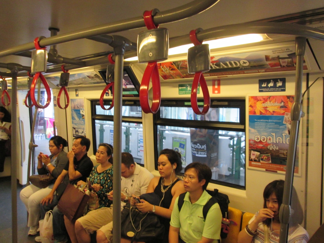 平日の通勤時間帯はBTS、MRTの車内は大混雑です。東京都内のような通勤ラッシュで電車には乗りきれず、駅ホームには係員がいて整理をしていました。駅構内のエスカレーターは全て登り専用になり、少しでも混雑解消の努力をしています。