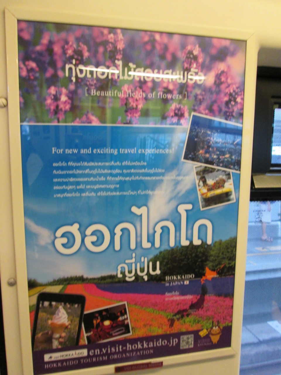 ここ数年はバンコクの治安はいたって良好です。市内を走っているBTS、MRTの車内はラッシュで満員になることはあっても、安全、安心です。車内には親日の国らしく、北海道の観光ポスターがありました。平和な国です。