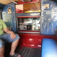 後は、運転手に行き先を告げる。OKであれば、そのまま荷台に乗り込む。私の場合は、助手席が空いてたら、そこに乗り込む。クーラーが効いてて、涼しいのと、たまに運転手とも話できるので。現地につくと、20Bを渡しておりるだけ。