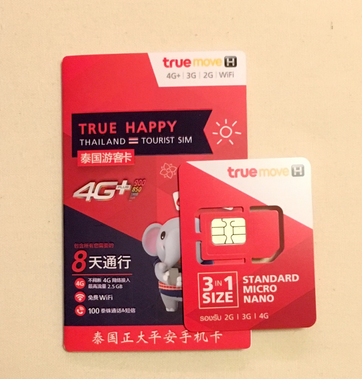 通信速度: まあまあ速い つながりやすさ: まったく問題なくつながる 手続きレベル: 誰でもできる また使いたい: はいタイの通信会社大手のひとつ、TrueMoveのツーリストSIMが安くて速い。