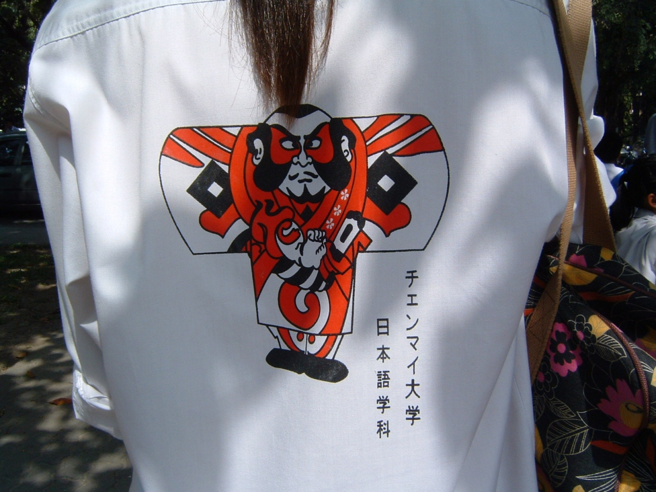 日本語学生の着ている服には皆日本語学科と記されていた・・・面白いことにそれは制服にも値するほど重要な意味を持つんだそうだ・・・勿論ココの学生であることの証明でもあるわけだし・・毎年行事があるたびに新調されるとまたコスチュームは増えるので着るものには困らないと笑いながら話してくれた。学生は明るい・・そのエネルギーが乏しい歳に突入したわけだと今更ながら感じたりして・・そんなエネルギーを感じるには大学の中は刺激的です。面白いデザインだと思うけど・・彼らに撮ればそれが日本の象徴でもあるんだなあ・・とチョット面白い物紹介です。