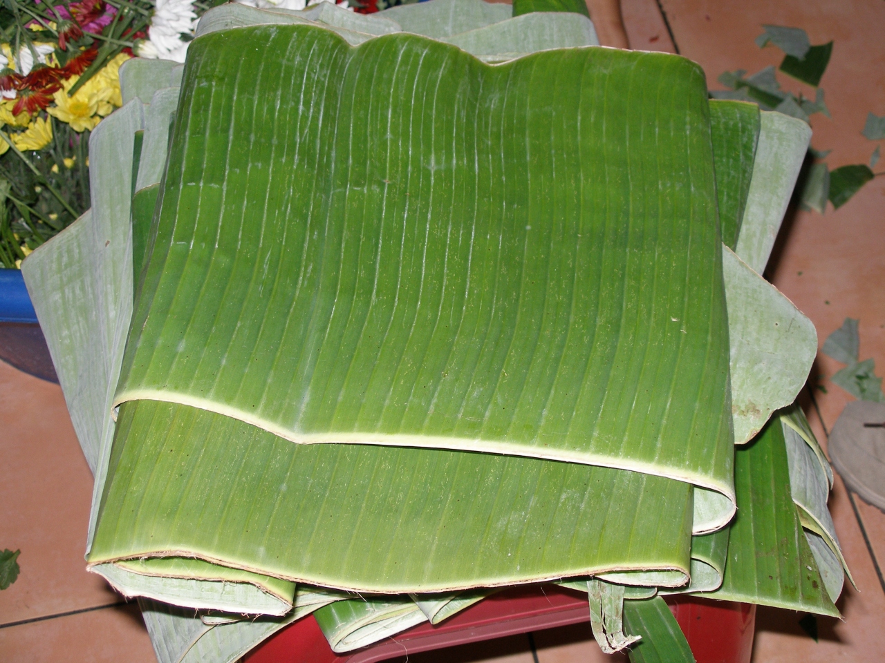 日本だとさしずめ笹葉ですね・・・ただ乾かして使うのではないところだけが異なるとしても、殆どの用事がこのバナナの葉で済みますかね・・