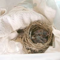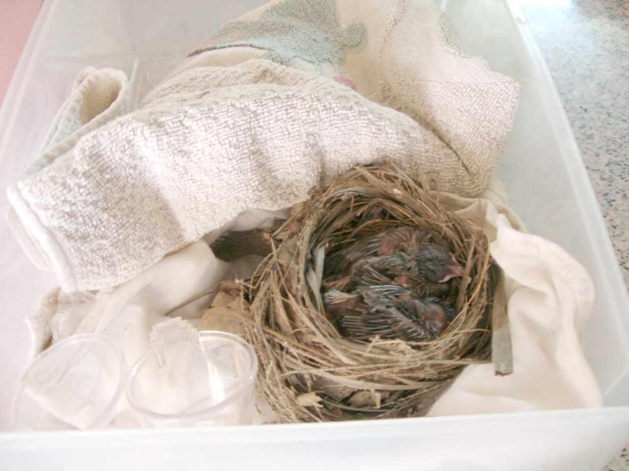 この子達は2個の卵でした・・2匹でも狭いこの巣も自然の中では雨水に耐えられる物ではなく・・親が自分の体で雛を雨風から守る様子は中々涙ものです。こうして自然界のおきてに逆らうことなく自然に巣立つ野鳥はまだいいのですが・・今年は災難で・・沢山の巣が木から落ち・・ダイブ山間でも例年に比べて野鳥の姿が減っていると報告されています。哀しいですね・・・自然災害だけは防げませんから。。 -