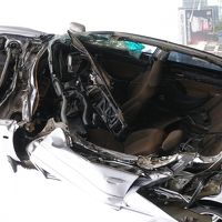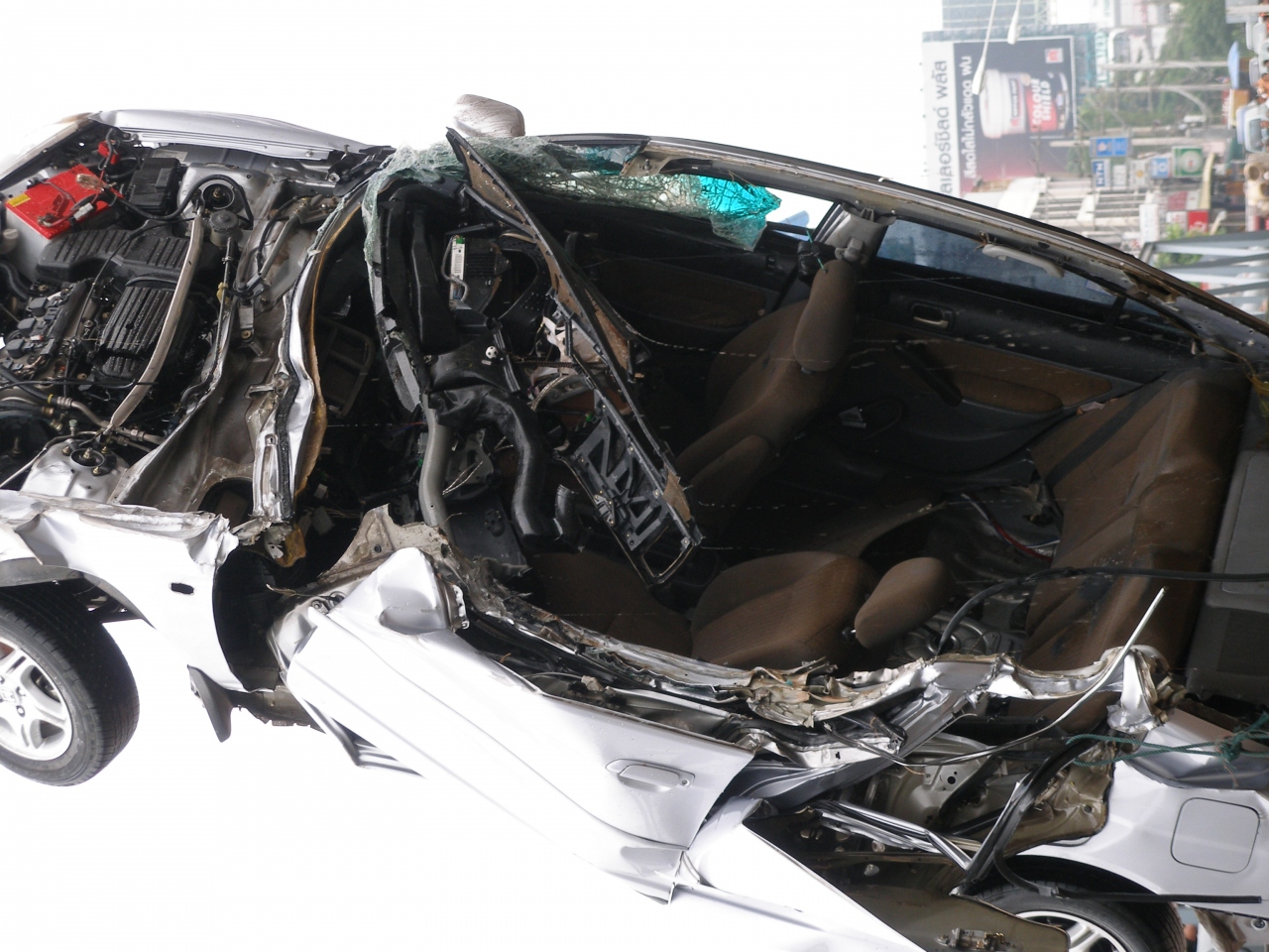 今日は何の行事が行われているんだけ?と不思議な光景を見にしたら・・橋の上のでは4台の車が玉突き衝突・・で3事故その為に更に渋滞を招き・・そして其れを見ようと人が沢山集まるにしては??どうも橋の下が騒がしい・・・まさか・・事故で何かが川に落ちたのか?と急いで車を止め橋の下に見に行けば・・・・・何かが川に落ちている・・・と・・・1時間程時間が係りながら引き上げられた車の様子はこんな状態・・・・中に既に人は誰もいない・・けれども誰もが分かる・・・即死!既に川に流されていると言う事だけは・・・では遺体は何処だ??と騒然とした雰囲気が伝わる異様な光景だった・・・