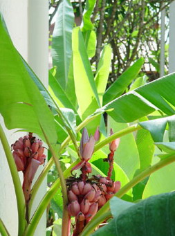 ランナーマントラホテル内で見つけたピンクのバナナ鑑賞用でしかないはずのピンクのバナナが実をつけているなんて・・凄いラッキーなホテルだと思う・・その上バナナは首をたらして花に実がつく物です・・其れが花が上の咲き実を付けるというのは超!!珍しい上に中々本物と出会えるチャンスもないですから・・小さい幸運をプレゼントです。