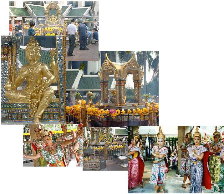 このゼンや伊勢丹の近くにあるエラワン・プームは通り掛かった人なら誰でも不思議に思う祠かも知れません・・何しろお参りする人が絶えたことがないからですが、このあたりでは特に御利益のあるプームとしても有名です、エラワンプームはヒンドゥー教のShiva, Vishnu, Brahma の3大神のうちの、Brahmaが祭られており、特にタイ人以外には中華系や香港・台湾などからの旅行者の参拝客が目立ちます。