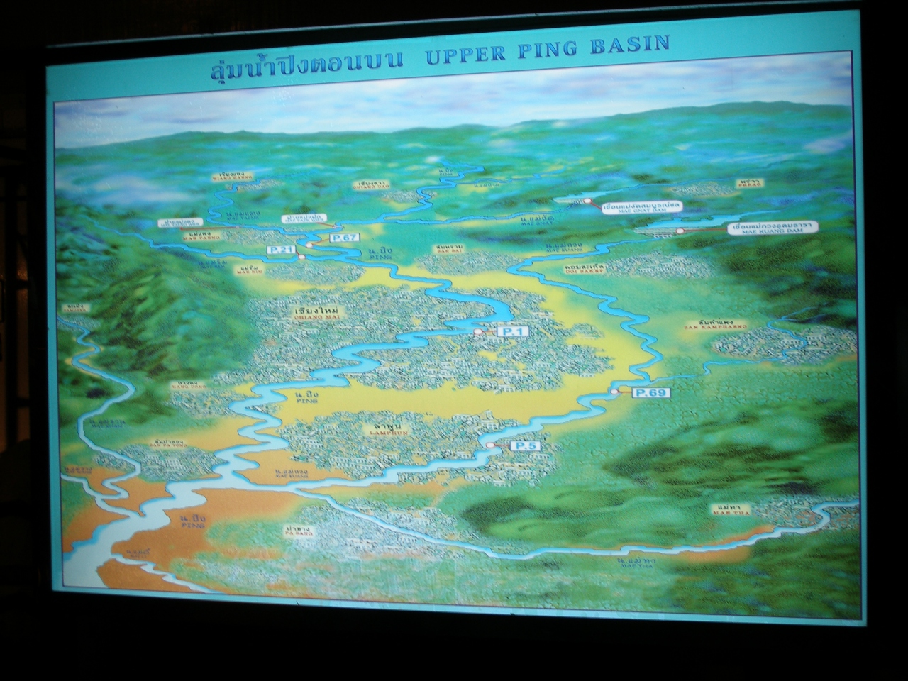 良く見れば前回の洪水はチェンダオの山からのものと言うことはこのボードの左上側から・・しかし今回洪水が起こりだしてきた場所は右側ダムの辺りから・・地図で見れば凄く近いが・・実際にはチェンマイの街に到達するのは1日から2日後・・その壮大な道のりを感じることが出来る貴重な場所です。