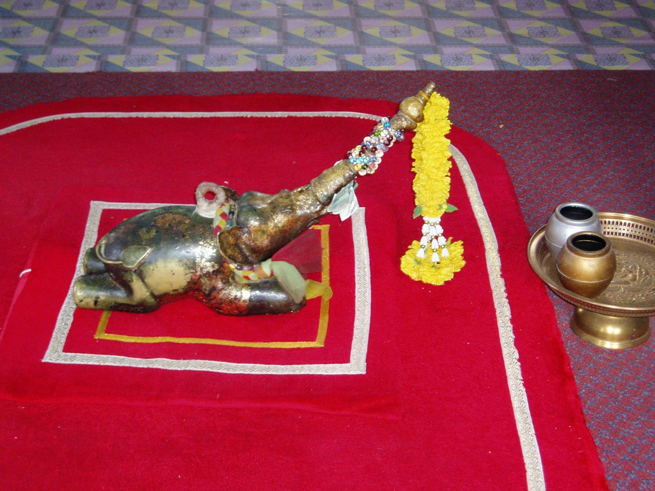 その正面には象の人形が置かれ・・願いことが叶うのかどうか?を尋ねることが出来ると言うことで、人々は順番を待っていた。しかも女性と男性とでは願いかたも持ち方さえも異なる・・女性は人形を正面にして左側に座りお祈りをする、持つ手は右側人差し指と中指の2本でのみ持ち上げることが許されている、そして願いが叶うだろうと言う予想がある場合はその人形はすんなりと持ち上げることが出来る。男性は人形を正面に見て右側に座り、お祈りをして左手の親指と人差し指でのみ上げることが許されている。