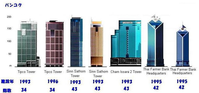 案外調べてみるとたくさんあるんですよね・・皆さんは何処に行った事がありますか?ビルとしてあげましたが・・ホテルだったり、オフィスだったり、多目的ビルだったりと種類が豊富です。日本にある高層ビルや世界中の高層ビルを上げているととても一日での製作が難しいので取り合えず、バンコク市内でご勘弁を・・
