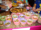 これがサイバーッの基本系です、108個分のお金を托鉢に使う入れ物に中に順番に入れて行きます。心を落ち着かせてその托鉢ようの入れ物に入れていくといい音がします・・まるでメロデーを奏でているように美しい音ですよ・・これで108人分のサイバーツをした事になる訳です。しかし今日のように行事でする場合には’物凄い人の列が出来上がり・・、瞬く間に満杯になるので・・手伝いの子供達は2人で一組となり入れ物の中の小銭をバケツに入れながら汗だくで回収している姿が可愛くて印象的です。額には汗が浮び大変そうです。 カンドーク期間中のみワットジェディールアンの本堂で出来ます。