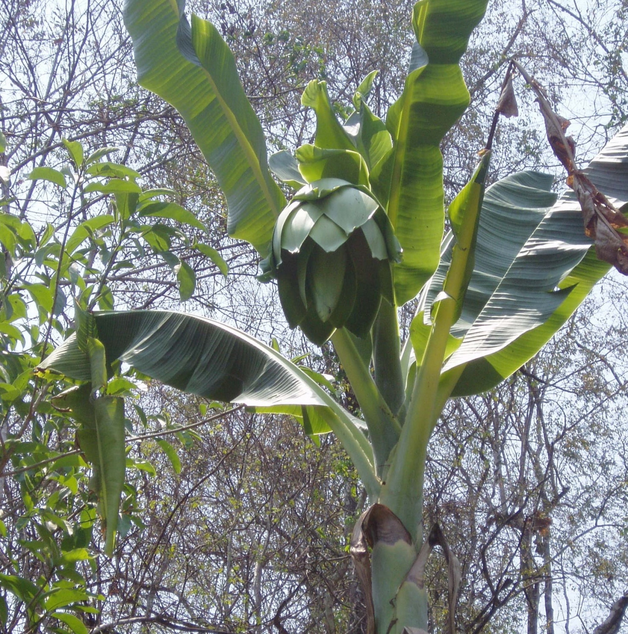 バナナは自分の生涯で一度だけ花を咲かして実を付けて命を閉じるんです・・なのにどうして??赤いあの花が咲かないのかなあ??これオスかな??馬鹿なあ??