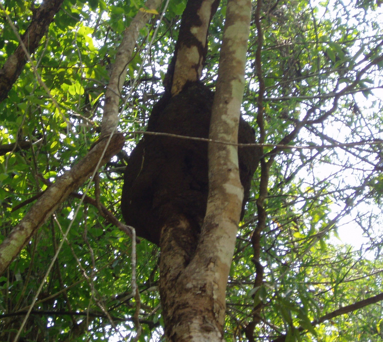 街の中で見かけるものにはもう少し乾燥状態で地面から盛り上がるように造られていますが・・山などここはタマタマ温泉の湧き出ている場所の為地面の下に入れないのでしょう・・それで木の上に作るって要るんでしょう・・ここはナショナルパークの為手で触る事も見ることも出来ません。管理をする人の話では土が濡れている状態なので2―3時間で作られた新しい蟻巣かだと言うことでした。チョット見かけないよね・・日本ではやはり・・ -
