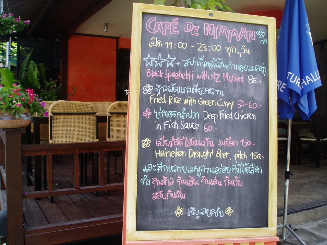 以外に重宝で便利な存在・・でも全部タイ語が哀しいかな??外人には分らない・・英語と日本語を書き込むオーナーもいる位最近のタイ人は勉強家かもしれないな・・足を止めて読んで見るのも面白いのではないか?と思い点々と歩いていたら・・暑さで頭がクラリとしたりするので要注意です。 -