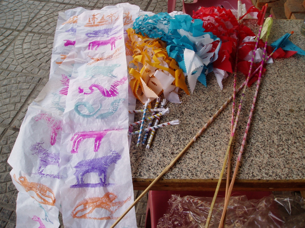 厄除け用のこの紙・・ソンクラーンが近づくと沢山の店先、家の前に飾られる。意味自体は厄除け!今年のソンクラーンは例年になく長い休みで9日から17日まで殆んどの大きな企業・会社・公共施設などが休みになる。