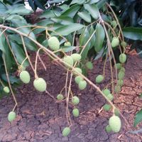 写真はリンチーです、まだ青くて・・当たり前だ・・5月下旬までまだ、1ヶ月あるこれが日に日に大きくなり小さい卵かなの大きさになると自然の赤い色になるんだ・・その熟れ方次第で甘さが決まる・・毎年その時期雨が多く毎年半分以上が全滅・・・哀しいかな値段も落ちる。。今年はどうなるのだろ、楽しみ楽しみ毎年値段に開きがあるからな・・今年の予想は?1kg80B・・なり・・・これは美味しい種類の大きい物ですよ!!小さい酸味の強いのは多分1kg25Bでしょう・・・でもお土産には駄目ですよ!!