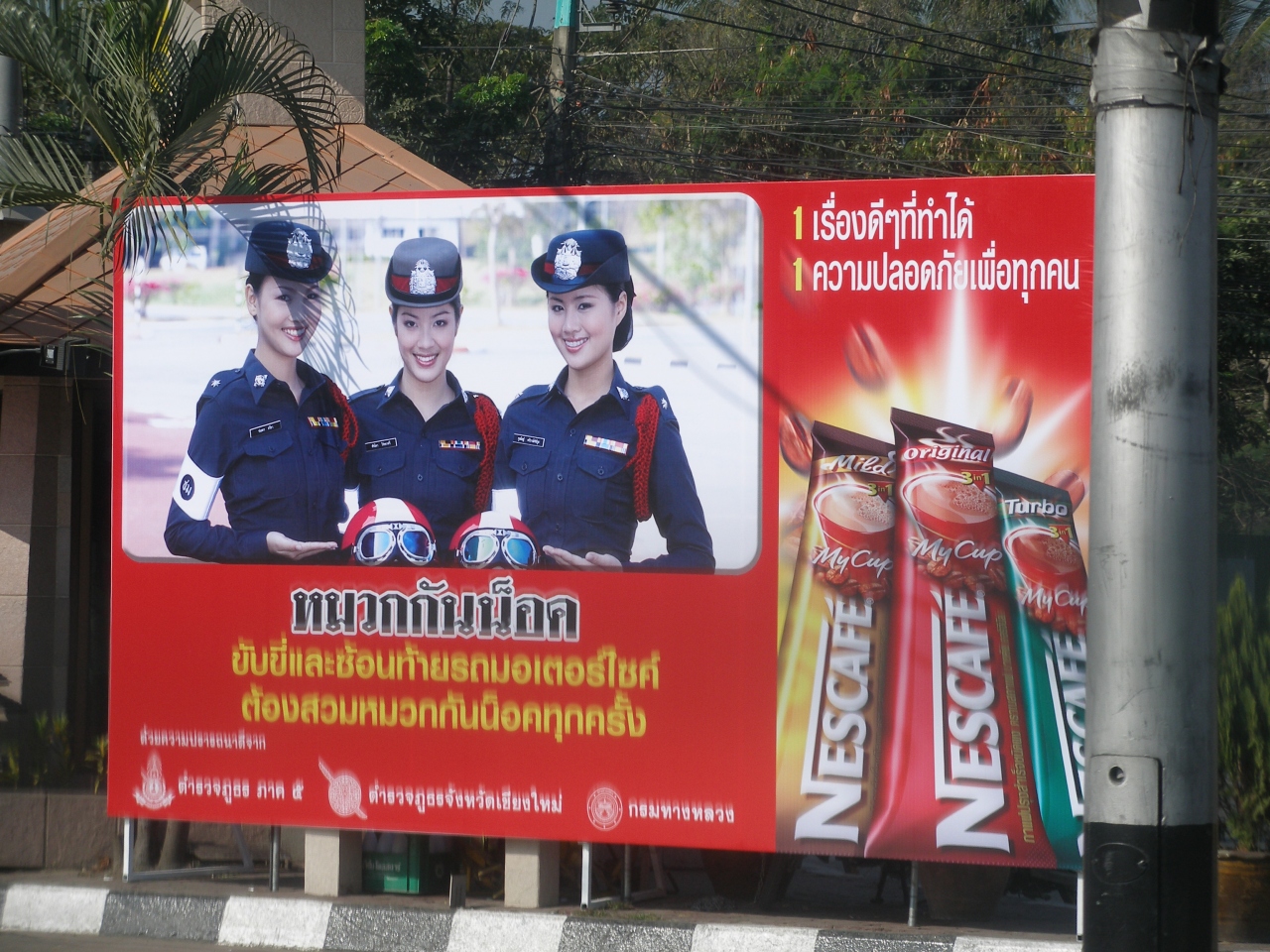 いきなりチェンマイ婦警軍団広告で見せてくれます。至る場所に張られて目を光らせているような感じもしますが・やたら警察官が目立つ中で・・とりあえず女性であることが美になります。