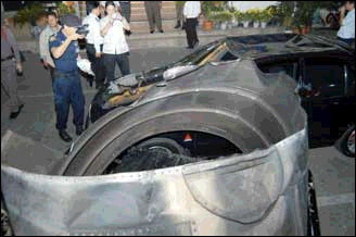 タイの国内だけでもたくさんの事故があるが、これは空からの贈り物?死傷が出ないのが幸い!それでもトラック2台が破損・・・