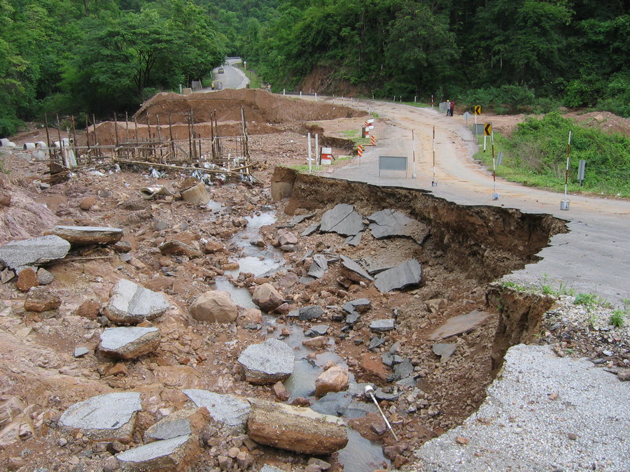 ナン県からスコータイに欠けての土壌は最悪な状態である。プレー県では土砂災害が留まらず危険度を増しているからだ・土壌が柔らかくなり崩れやすい山間では不意の土砂災害で苦しみそうだ・今しばらくの遠出や車での通過は避けたいものだ・・地盤沈下した様子はかなり地上からでも確認できるそうだ・・