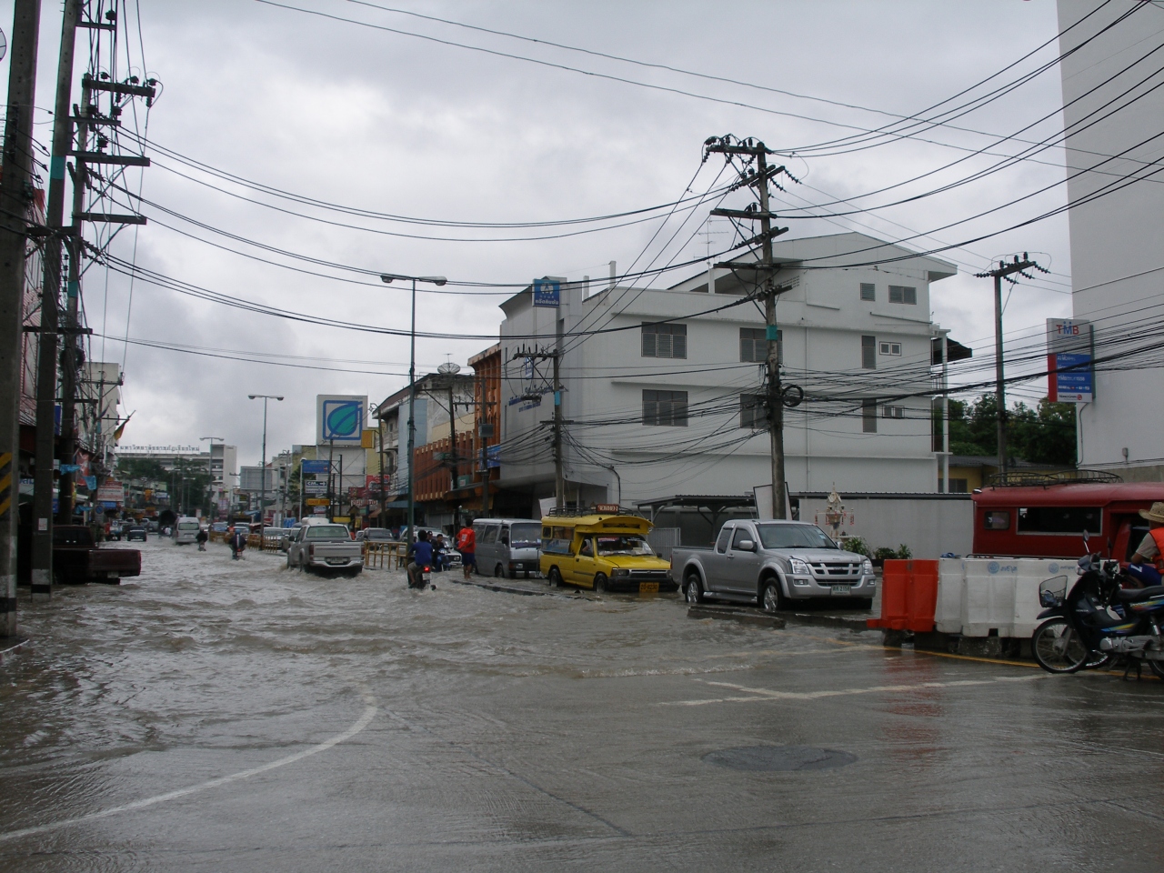 深夜遅く振り出した土砂降りの雨は物凄い雨量だ・・台風でもなく既に中国で被害を出した台風は通り過ぎてしまったのだ・・しかしどうもこの雨の出所はラオスらしい・・・もしかしてこのまま洪水??昨年と同じ・・やなな予感・・・既に水はけが間に合わない街中の道路は洪水・・