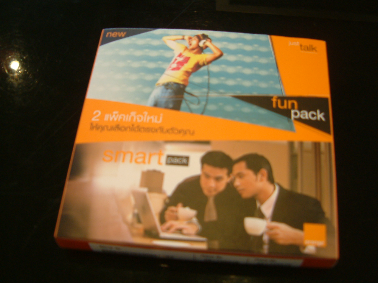 最初のSIMカードにはオレンジ社の場合は450バーツの中に100バーツ分の通話料金(2ヶ月間有効)が含まれていて、GSM社のには290バーツ中に300バーツ分の通話料が込みでした。会社によって各種スペシャル料金があるので比べてみると良いと思います。