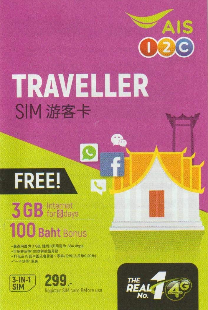 内容:タイ プリペイド SIM8日間 データ通信無制限 100分無料通話つき