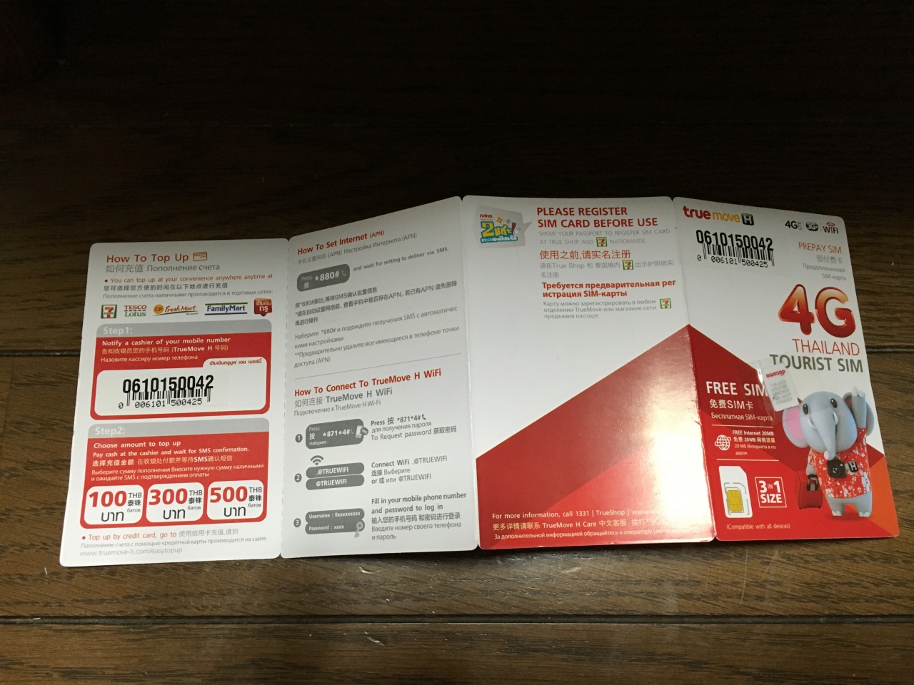 通信速度: まあまあ速い つながりやすさ: まったく問題なくつながる 手続きレベル: 誰でもできる また使いたい: はい便利で安くて、手軽に購入できるプリペイドシムカード。今回購入したのは、7日間でもっとも短期間のSIM。タイの番号も入手できるので電話もできるし、国際電話も驚くほど安い値段で利用することができるそうだ。1.5GBのパケットはさすがに1泊2日では使い切らず、もったいないと思うのだけど、なにぶん800円程度の話。
