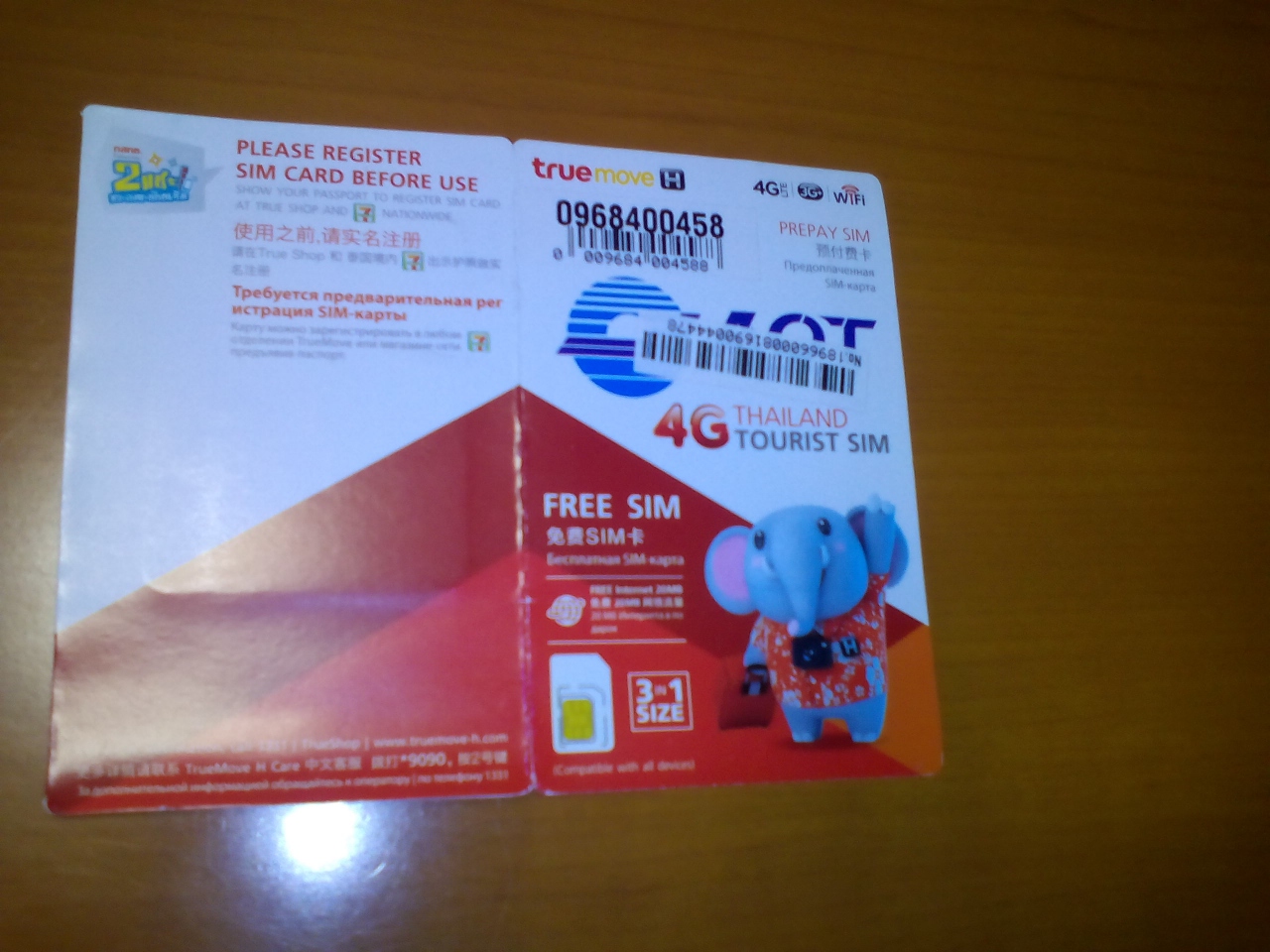 昨年2015年、パスポート持参で、True Move会社で個人情報を登録。
