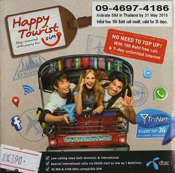 【Dtac】のHappy SIM(通話:35Days・INET:7Days使い放題)390Bを購入しました。