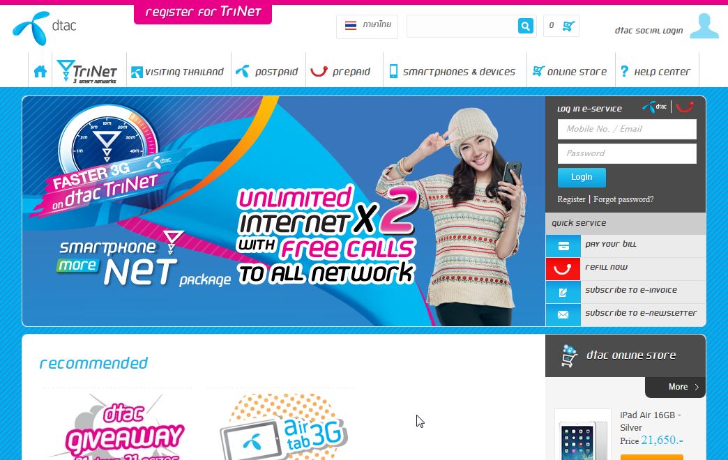 年末の出発前に国内でdtacのウェブサイト(https://www.dtac.co.th/en/)からリフィルしようとしたら、セキュリティが強化されているし、アドオンパッケージの申込みもできるようになっていました。