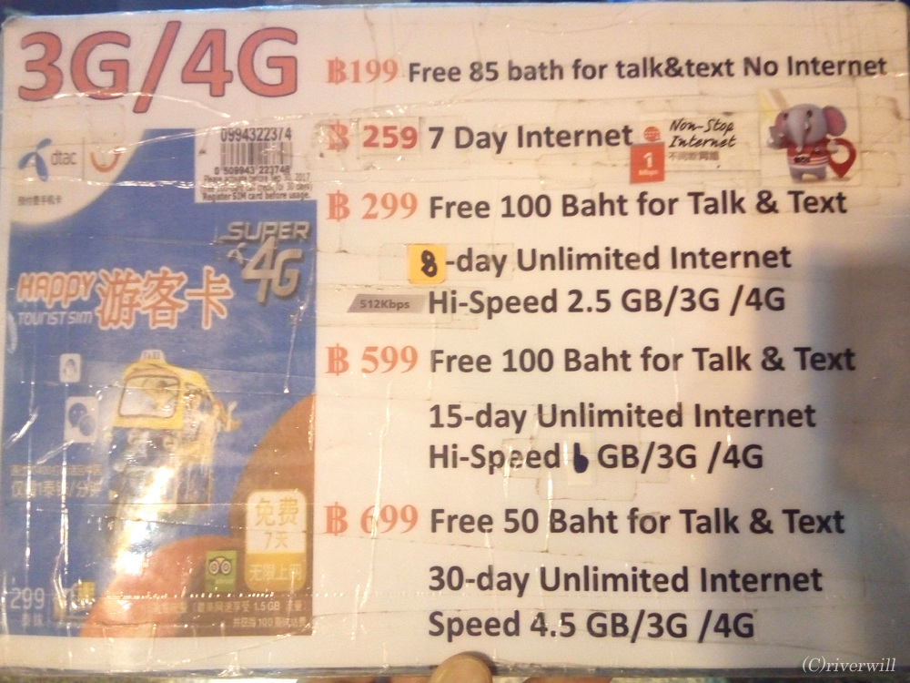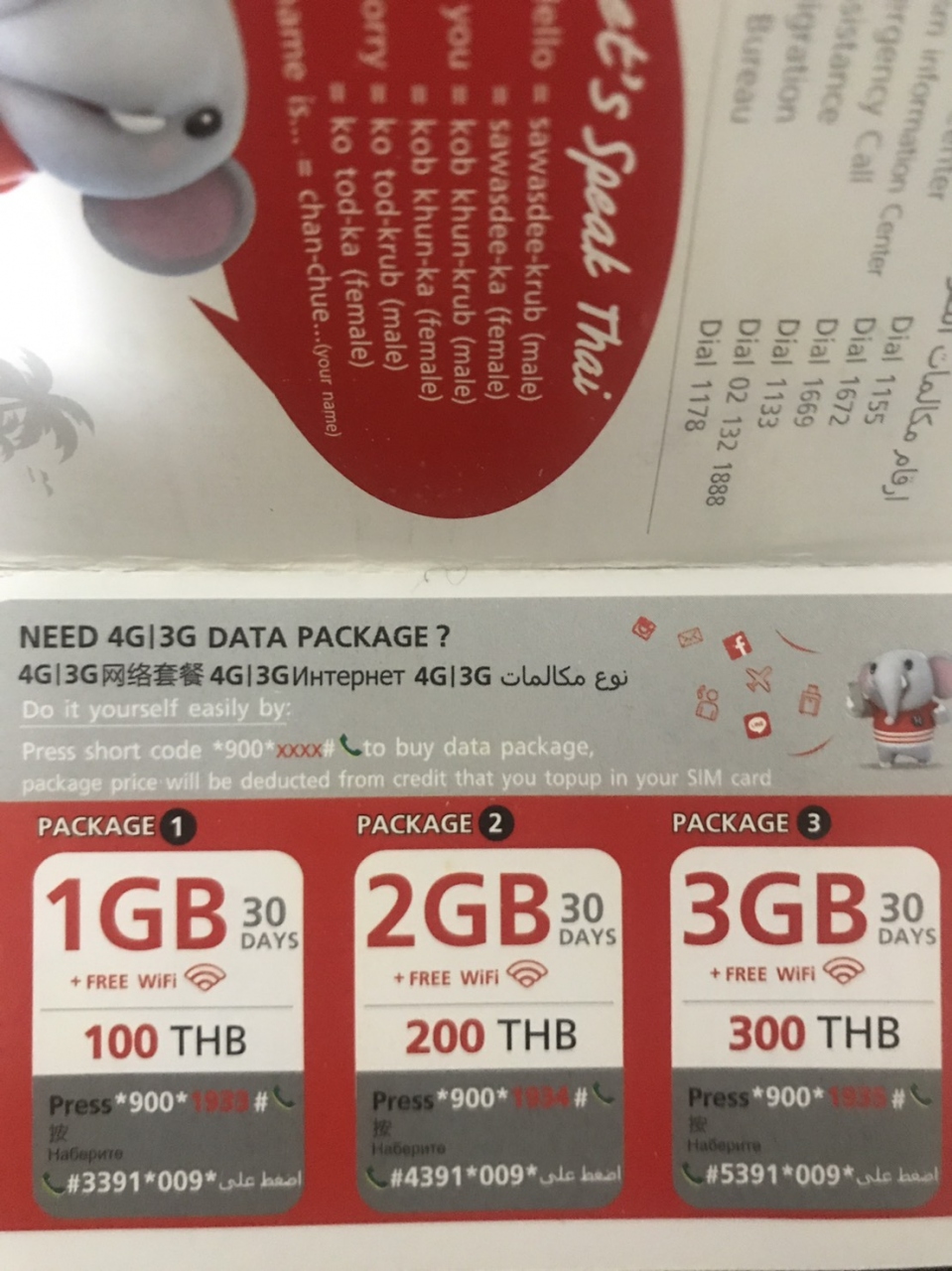 タイ国内無料通話もついていて、事前に電話番号がわかるのでとても便利。