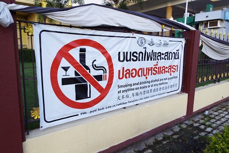 タイの鉄道でも「禁煙」ですが、さらにここでは「禁酒」となっています。