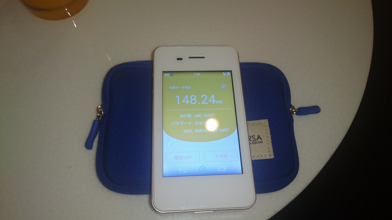 通信速度: 速い つながりやすさ: まったく問題なくつながる 手続きレベル: 簡単 また使いたい: はい海外に行くときは日本でWi-Fi をレンタルしています。今まではイモトのWi-Fi でしたが今回初めてjetfiを利用しました。イモトに比べて良かった点。①日本国内で設定できる。②今回は台北にトランジットするので複数の国でも接続できる。③モバイルバッテリーも兼ねているのでWi-Fi 用のバッテリーが不要。しかもスマホ用のバッテリーを兼ねられる。④これらの内容でイモトは3Gだがjetfiの4Gが値段が同じ。ということで使ってみましたが速度も充分だしバッテリーの心配がないのがいいですね。受け取りは空港で出来ますが返却が郵送のみなのがちょっと面倒だと思いましたが、返却用のゆうパックも受け取りの際に付いてきます。帰国したらそれに入れて空港内のポストに入れて返却完了でした。これはいいと思います。