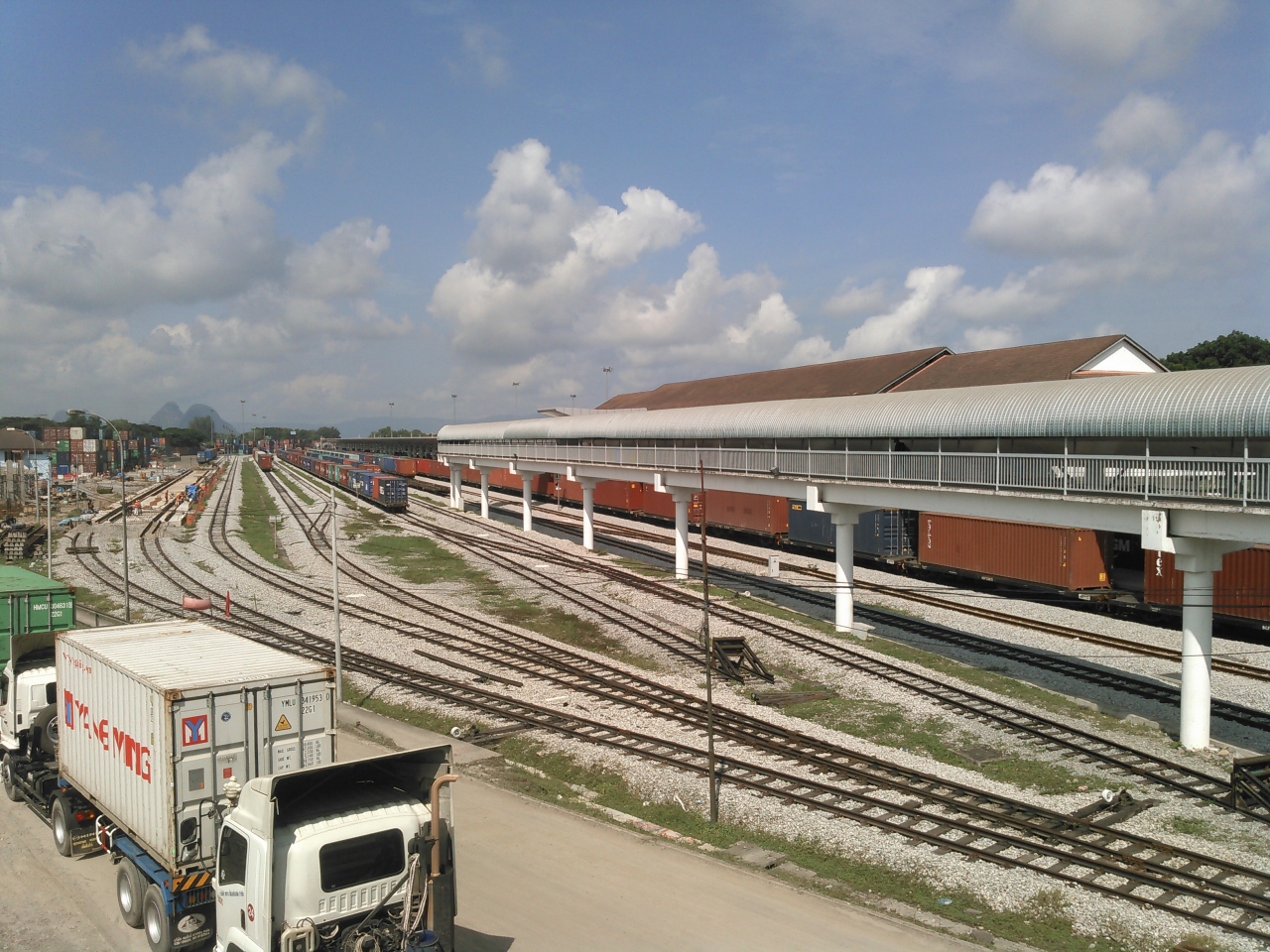 上記写真は、マレーのパダン駅(手前部分が長い歩道橋になっている。)と、タイ側の高兵公萬ホテル。 -