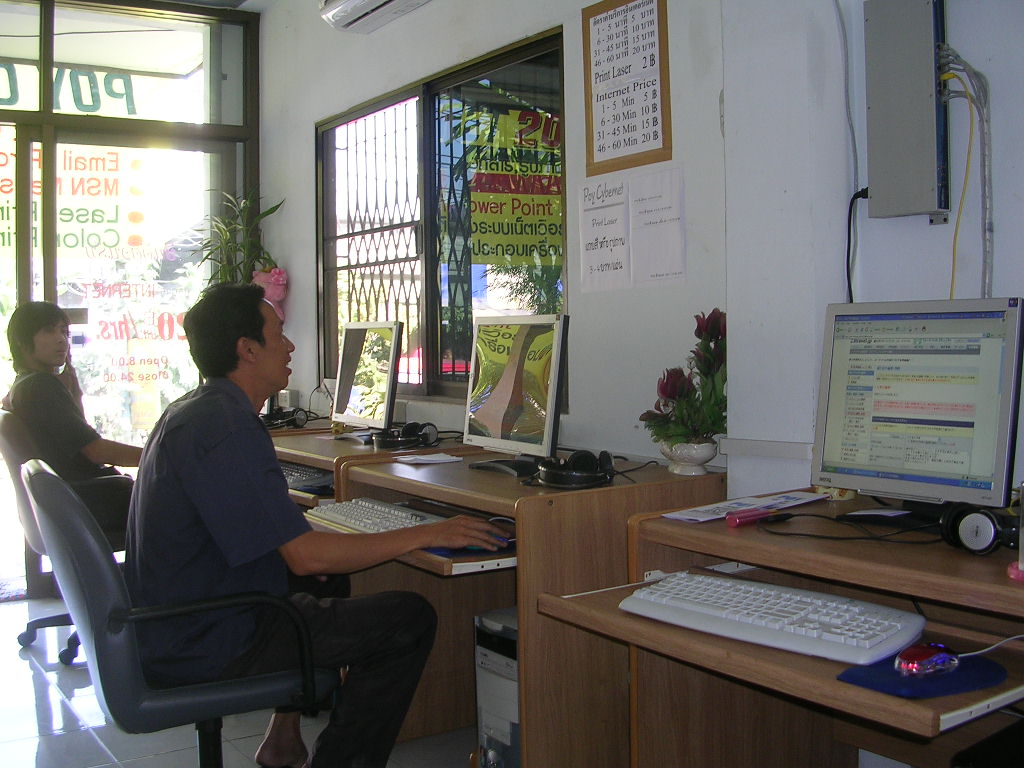 Sittiwong rd(プリンスホテル、プラザ・イン付近)にRoy という貸しバイクとインターネット屋がある、10台のうち6台は液晶画面である、