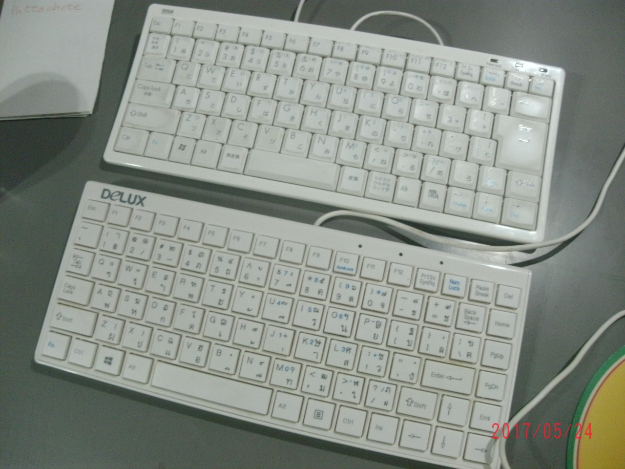 キーボードの価格はピンからキリまで有りますがバンコクの電気街では500Bも出せば高級品です、キーに張るシールも安価で有ります(日本でも)が使い勝手が違います。