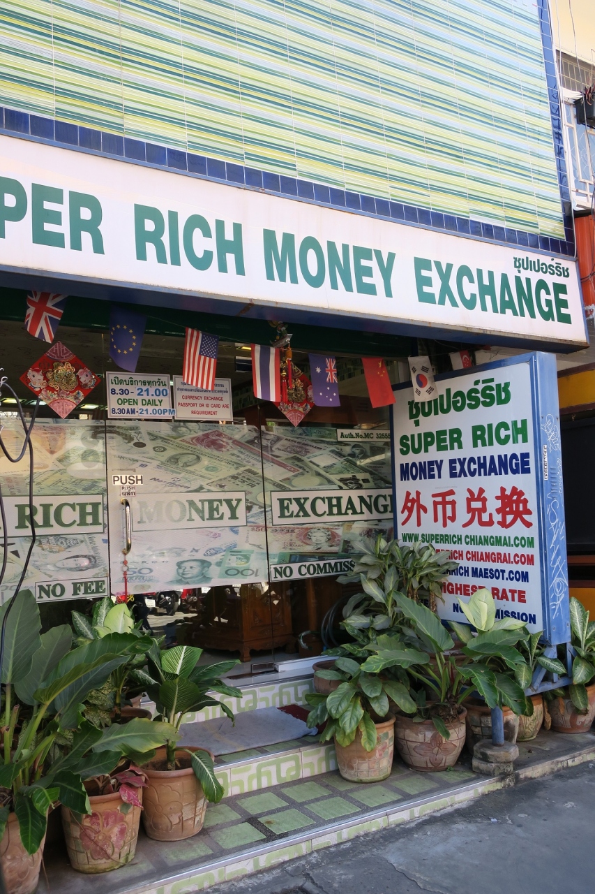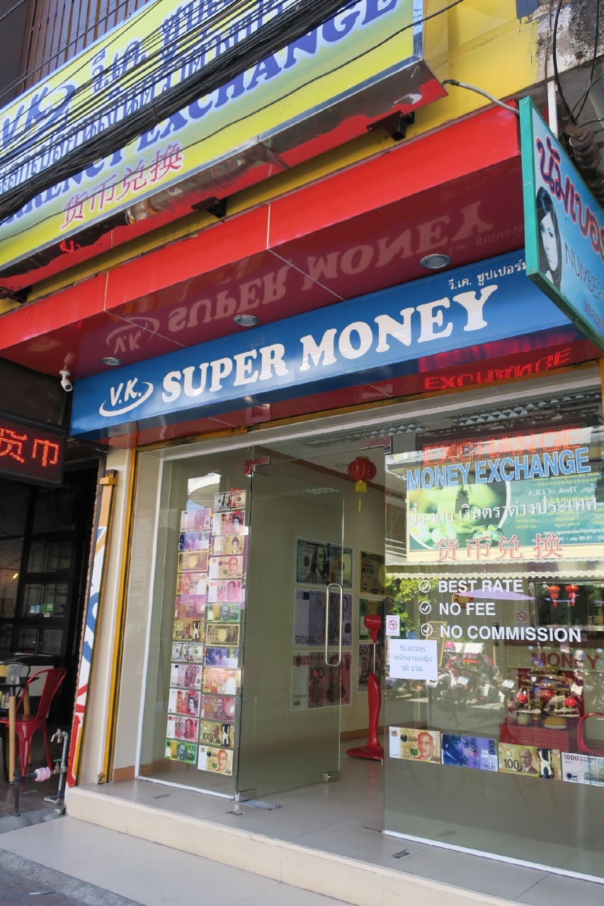 旧市街の中で何軒か見て回って、いちばんレートが良かったのは、ターペー門の北、Ratvithi通りにある"Super Rich"と"Super Money"の2軒でした。