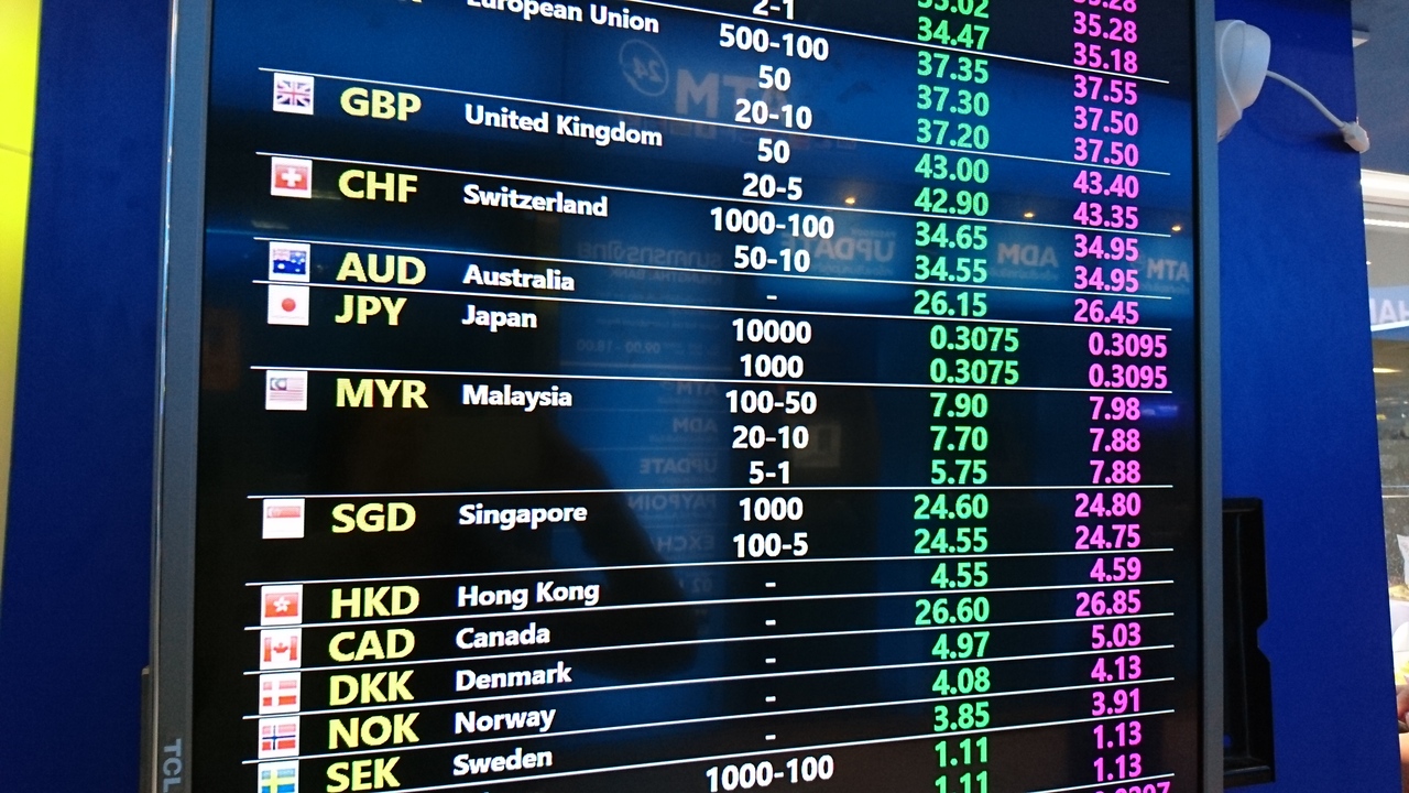 飛行機を降りて歩いていると両替ができるブースが目に入りますが、空港内はレートが良くないです。