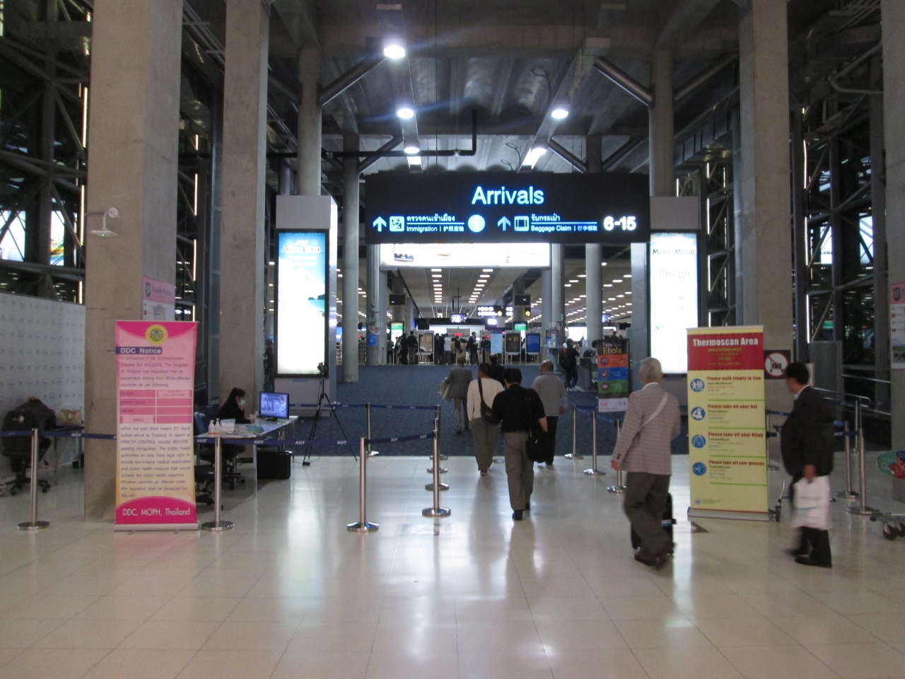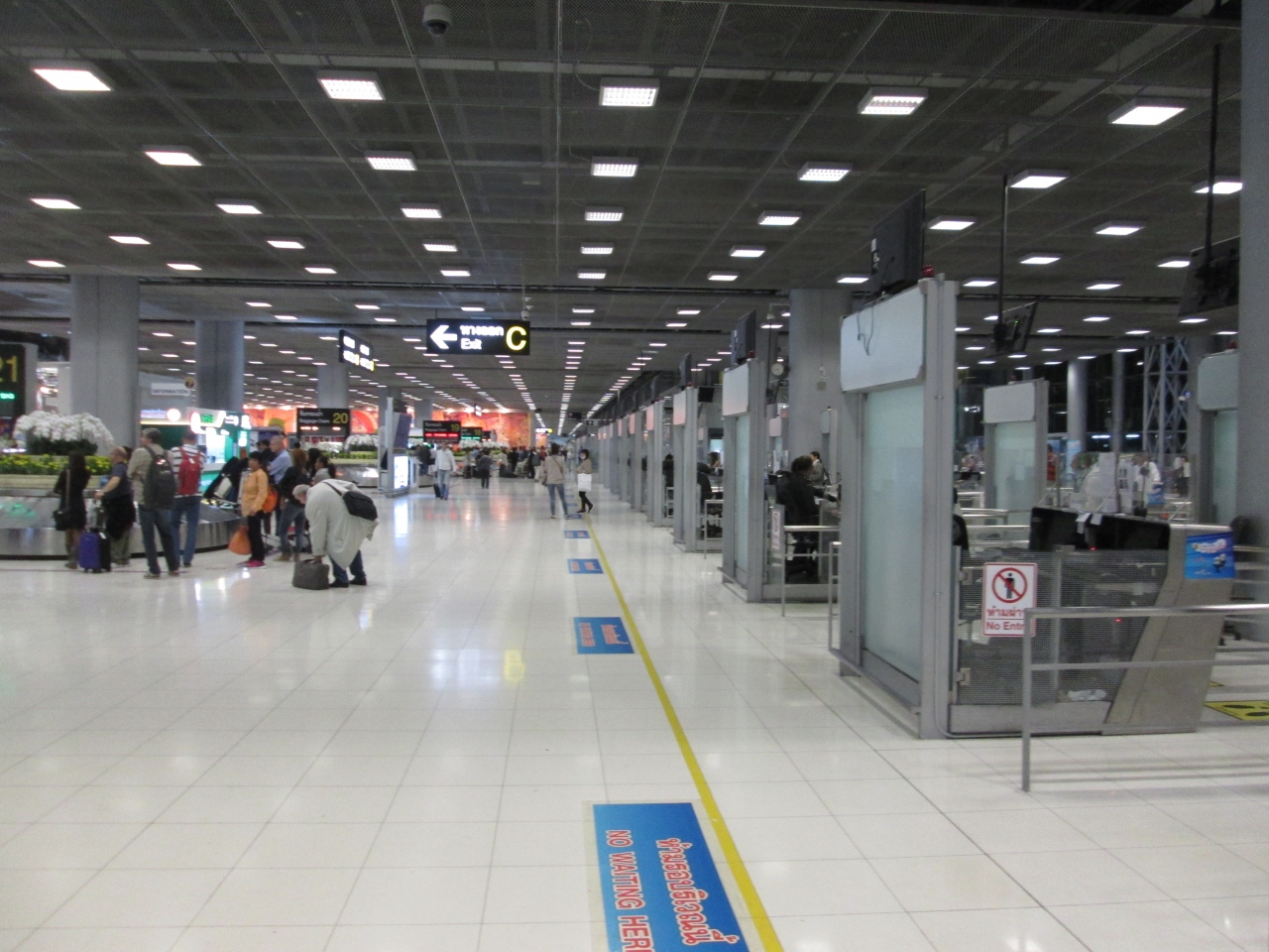 11/21(金)にスワンナプーム空港に到着。今回は入国審査場が荷物受取のターンテーブルが6−15番付近に飛行機が駐機しましたが、早朝にもかかわらずこちらは入国審査のための大行列ができていました。16−23付近に移動すると並んではいましたが、7人待ちぐらいで5分程度で通過できました。
