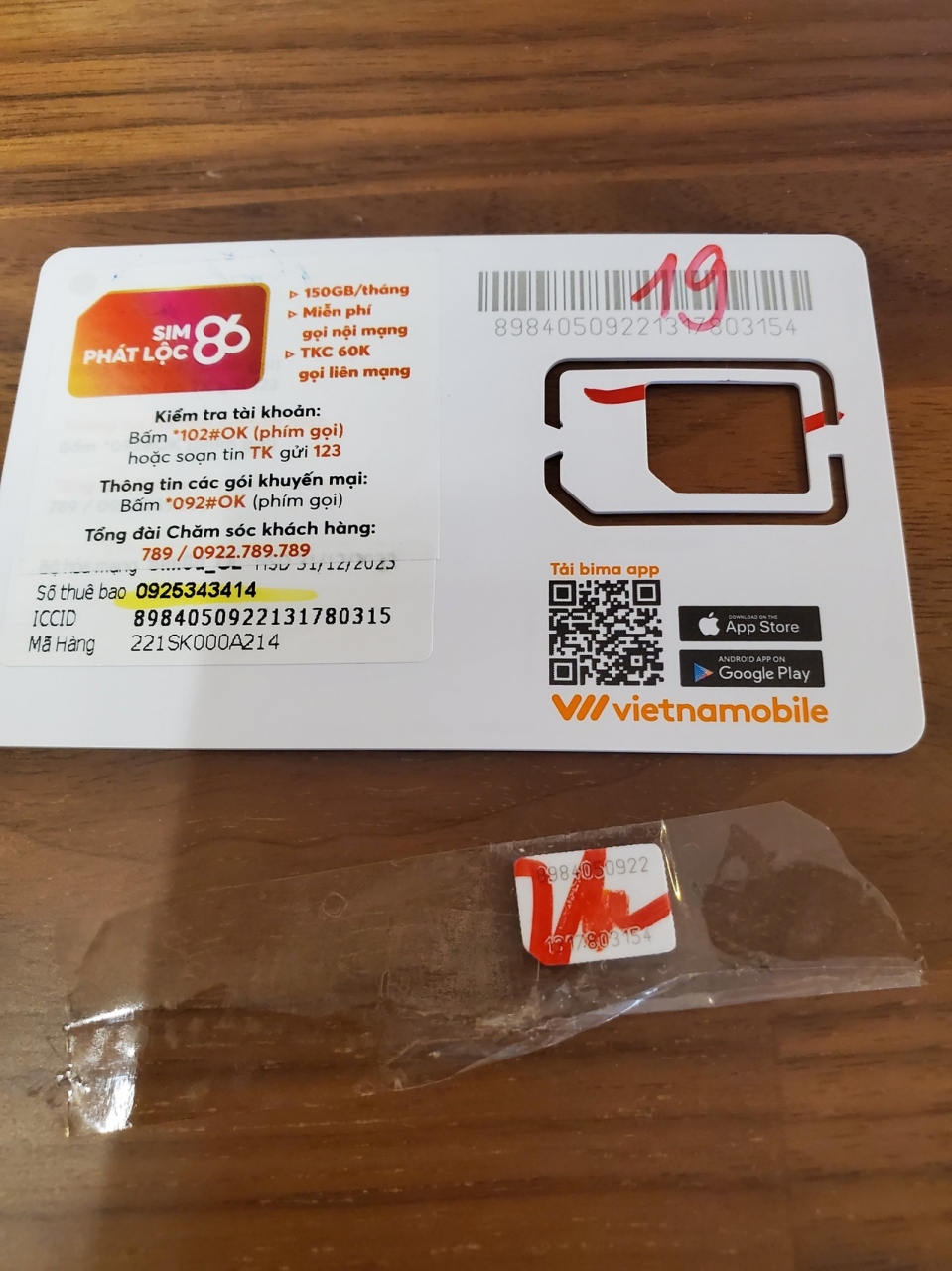 何日間の旅行か通話付きか聞かれ回答する。SIMカードを売るような会社であってもベトナムは超アバウトなお国柄。ちゃんとした説明資料や価格比較表は、そこには置いてなかった。通話なしデータのみの価格はラミネート加工のペラペラの資料で提示されたが持ち帰ることも出来ない。私は5日の日程で提出されたのは一番低い価格帯の149,000ドン。日本円換算が出来にくい私は通貨換算アプリで値段チェック。千円前後を確認した。プラン選択後は携帯を奪われぐんぐん設定作業してくれる。SIMカード取り出しのピンもこちらで準備不要だし、スマホ言語設定は日本語のまま。 日本で使用している simカードは スマホケースにセロテープで止めてくれた。