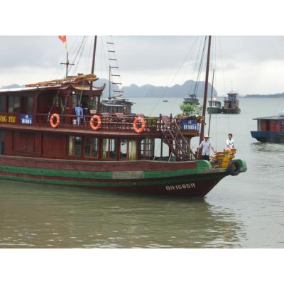 現地shin csfeでオプショナルツアー「ハロン湾ツアー」を頼みました。英語ガイド、昼食付き(クルーズ船上で昼食)、16人乗りマイクロバス使用、ハノイより日帰り観光、四人で11,763円(25ドル)でした。