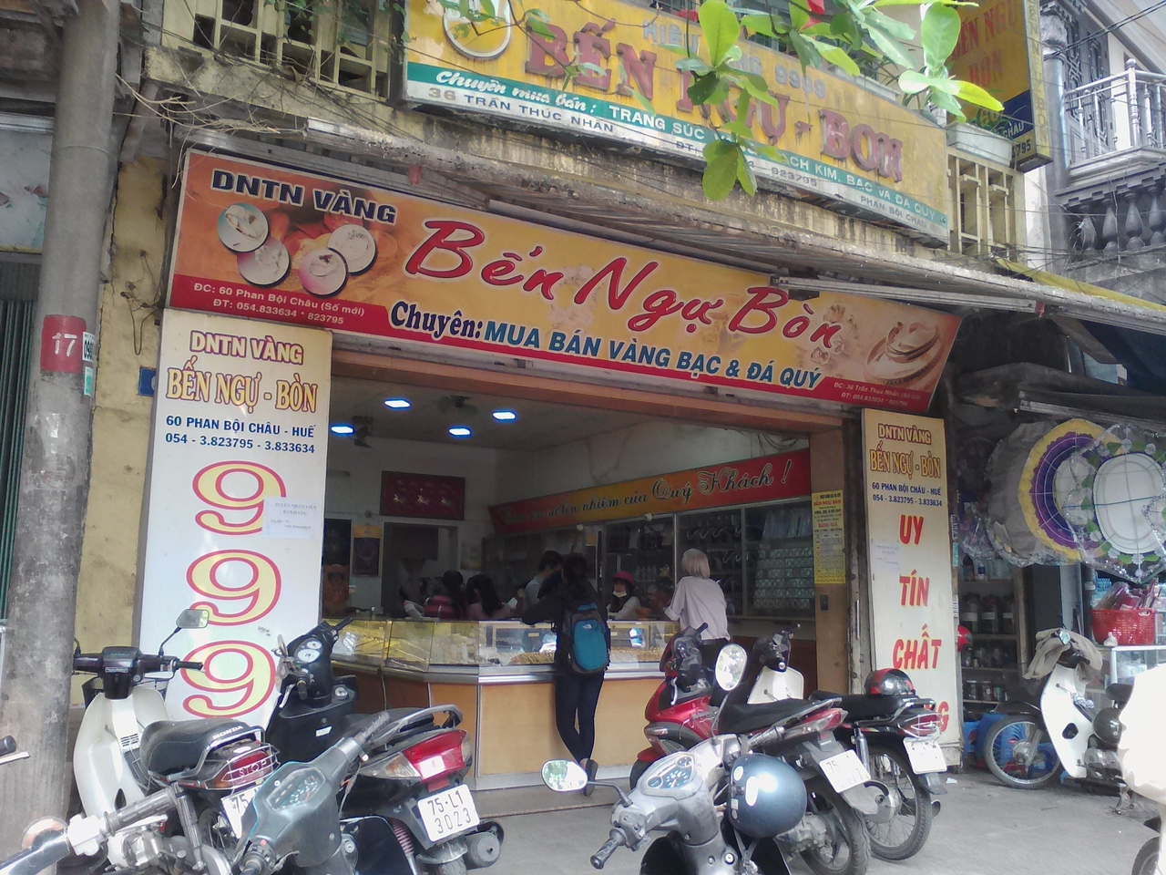 ドンバ市場周辺には数多くの金行がありますがその中でレートのよいのが道路を挟んだ向かい側にある「Kim Quy」(217 Tran Hung Dao st.)。